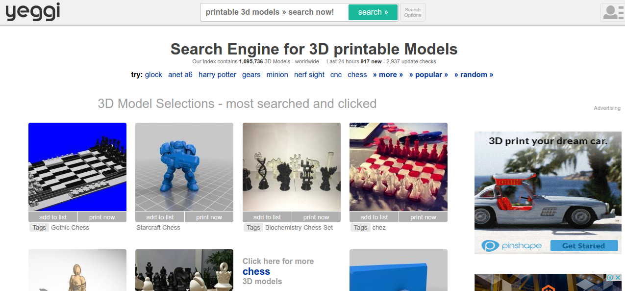 2.- Yeggi: Es un motor de búsqueda para modelos 3D, recolectan información de comunidades 3D y marketplaces; funcional desde abril del 2013. (http://www.yeggi.com/)