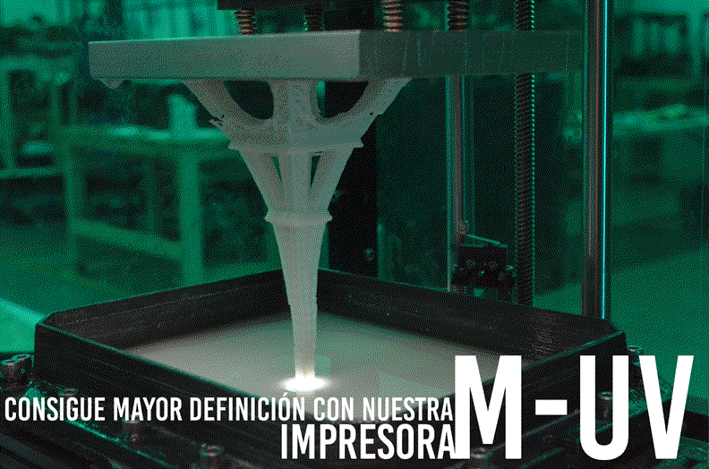 El curado de la resina fotosensible ocurre a partir de la emisión de luz ultravioleta que puede provenir de un proyector con tecnología DLP (Procesado Digital de Luz), un motor de luz, o bien Led´s ultravioletas.