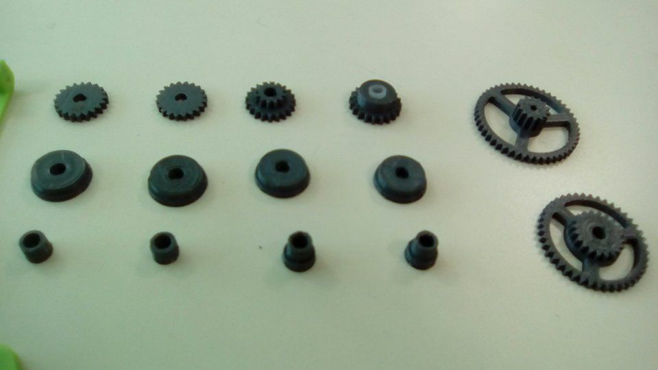 Realiza el mismo paso pero en el lado izquierdo; el engrane frontal en este caso tiene un radio mayor al resto y el engrane restante se coloca en el centro.