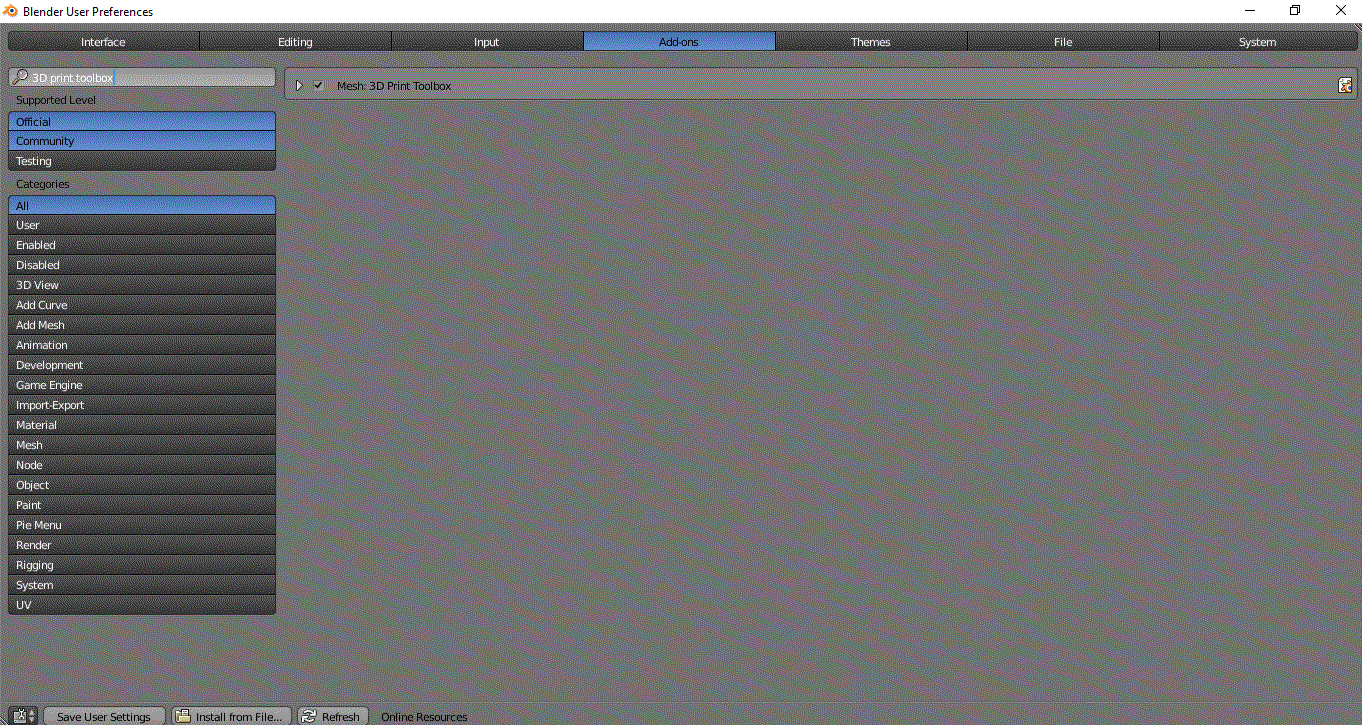 Add-ons->Escribimos "3D print Toolbox"-> Seleccionamos el Add-on
